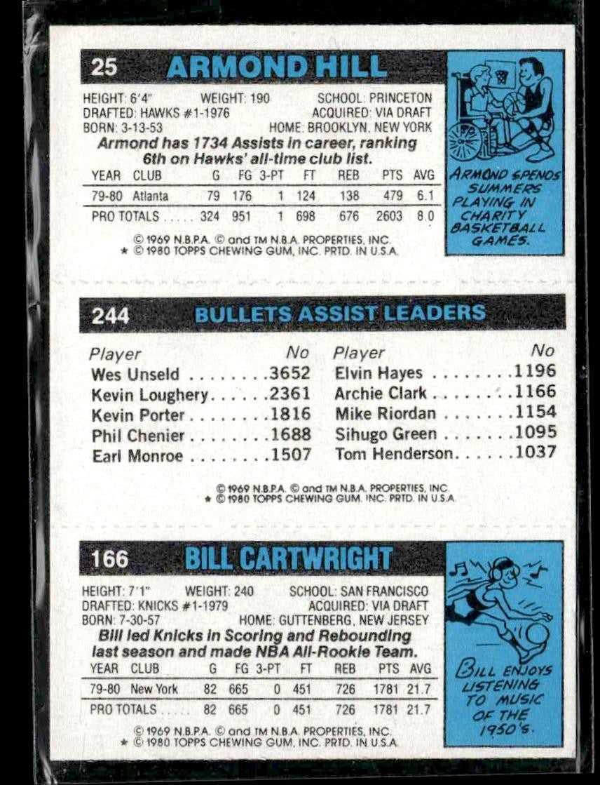 1980-81 Topps #25 / 166 / 244 Bill Cartwright / Kevin Porter / Armond Hill