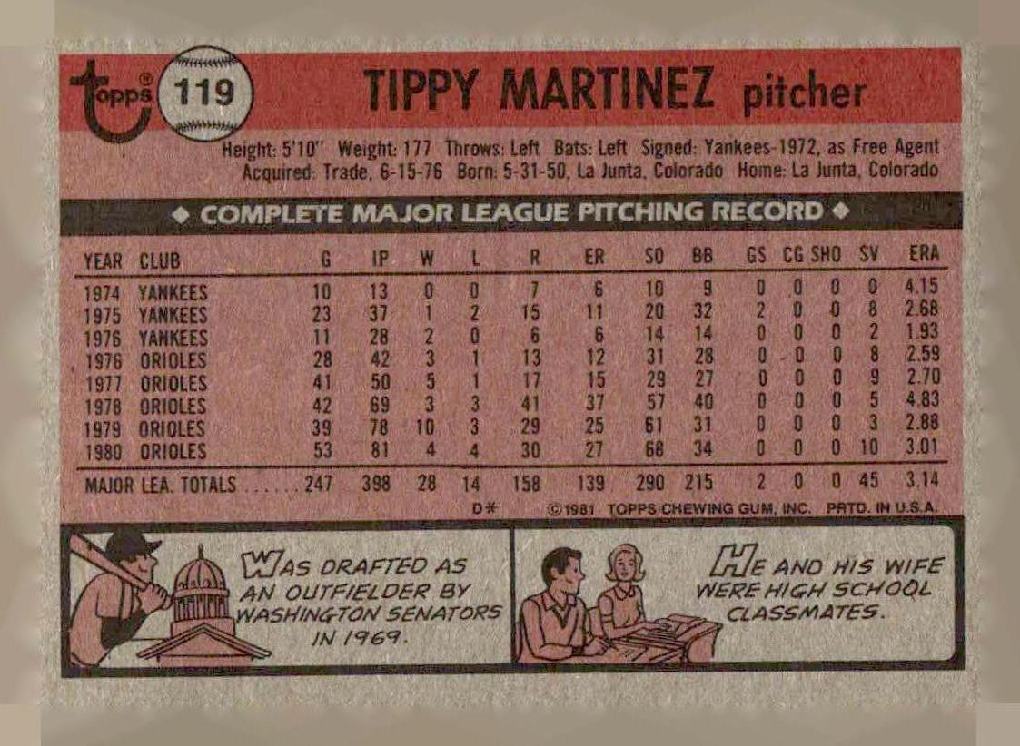 In 1981 Tippy Martinez played for the Baltimore Orioles.