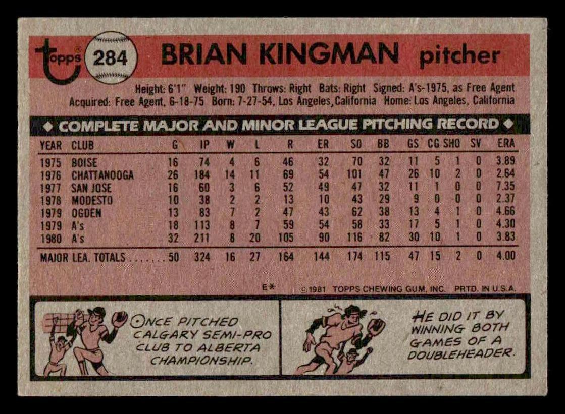 In 1981 Brian Kingman played for the Oakland Athletics.