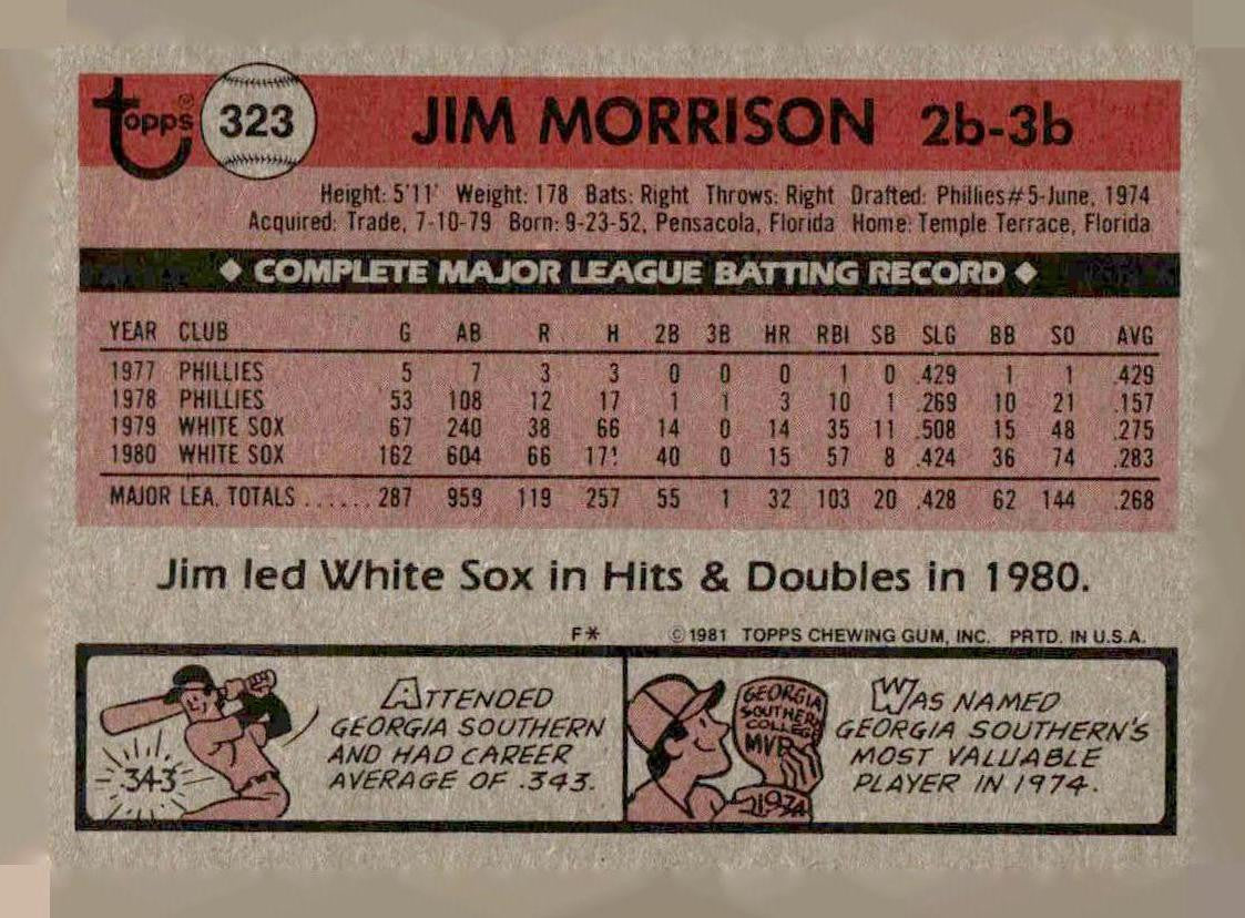 In 1981 Jim Morrison played for the Chicago White Sox.