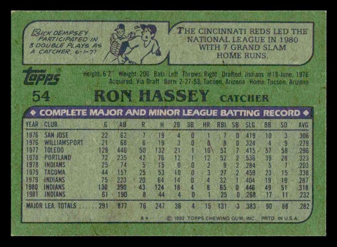 This is a nice example of a 1982 Topps #54 Ron Hassey