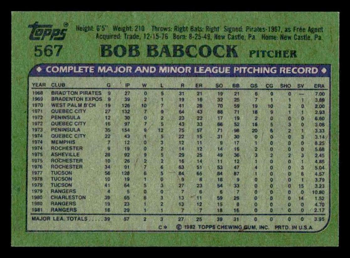 This is a nice example of a 1982 Topps #567 Bob Babcock