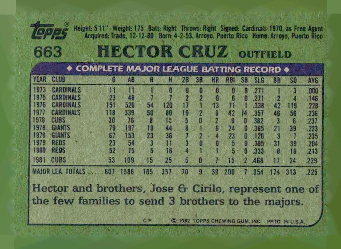 This is a nice example of a 1982 Topps #663 Hector Cruz