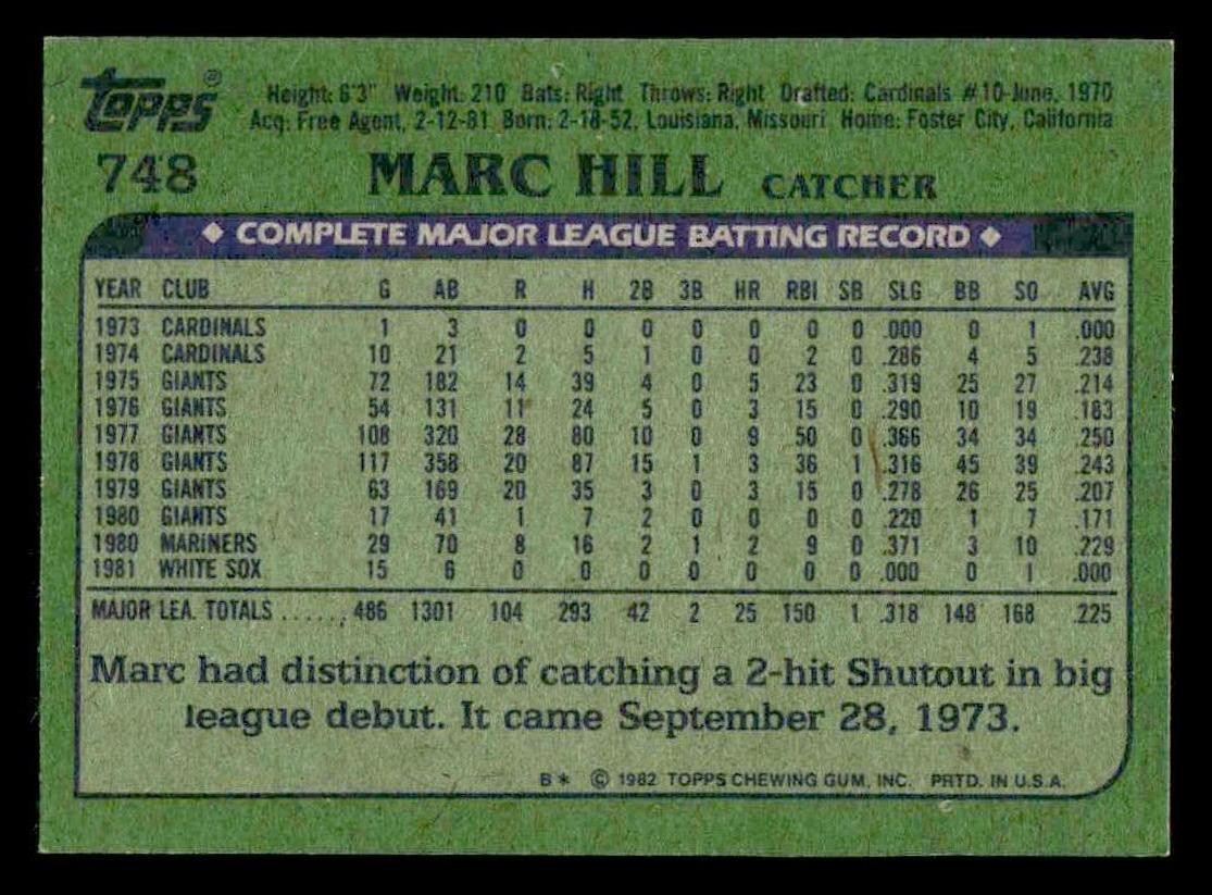 1982 Topps #748 Marc Hill