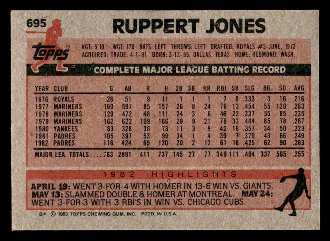 In 1983 Ruppert Jones played for the San Diego Padres.