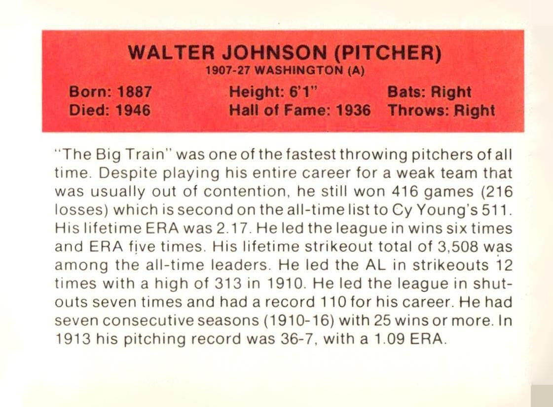 1987 Hygrade All-Time Greats #NNO Walter Johnson
