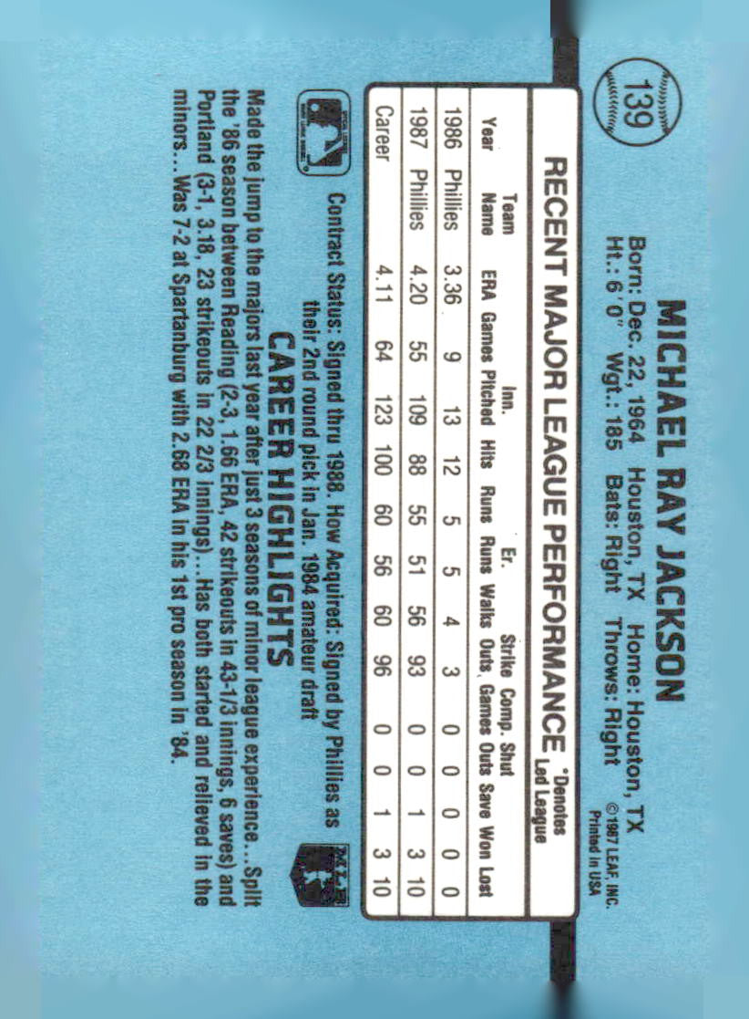 This is a nice example of a 1988 Donruss #139c Mike Jackson