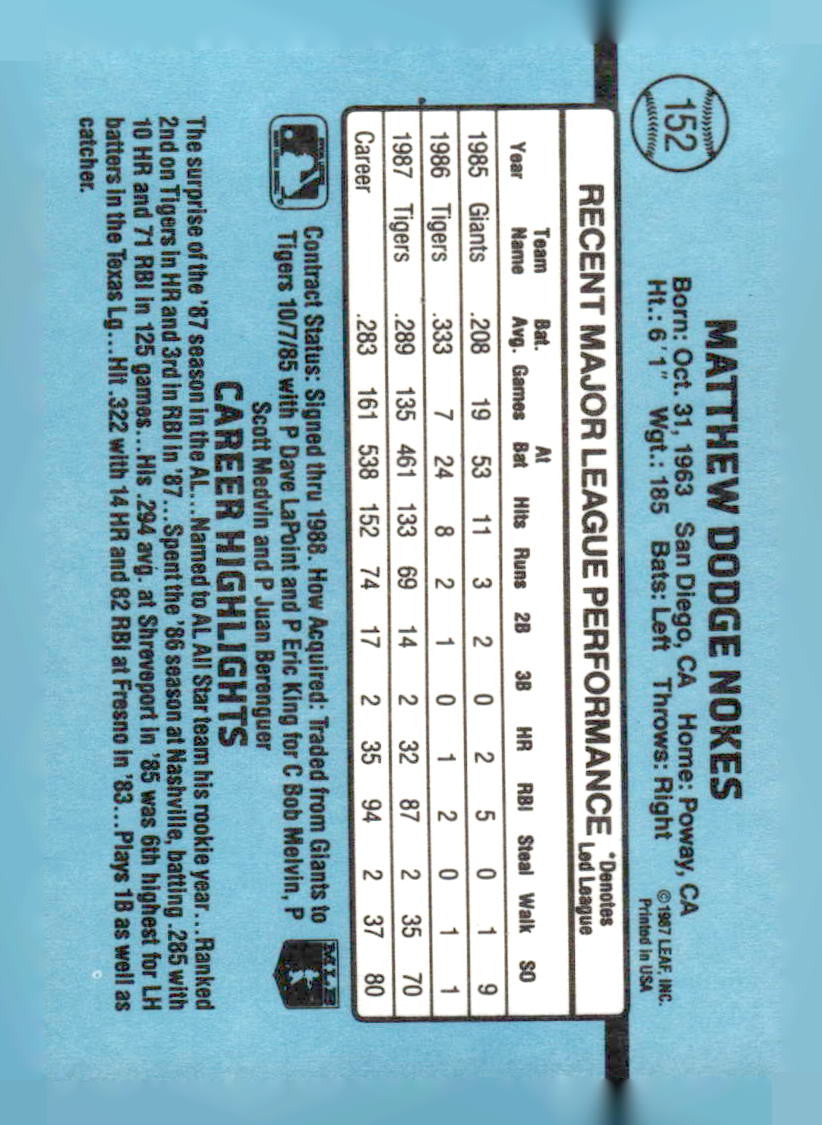 In 1988 Matt Nokes played for the Detroit Tigers.