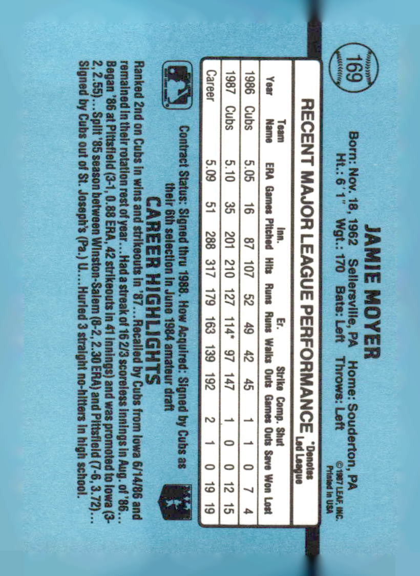 In 1988 Jamie Moyer played for the Chicago Cubs.