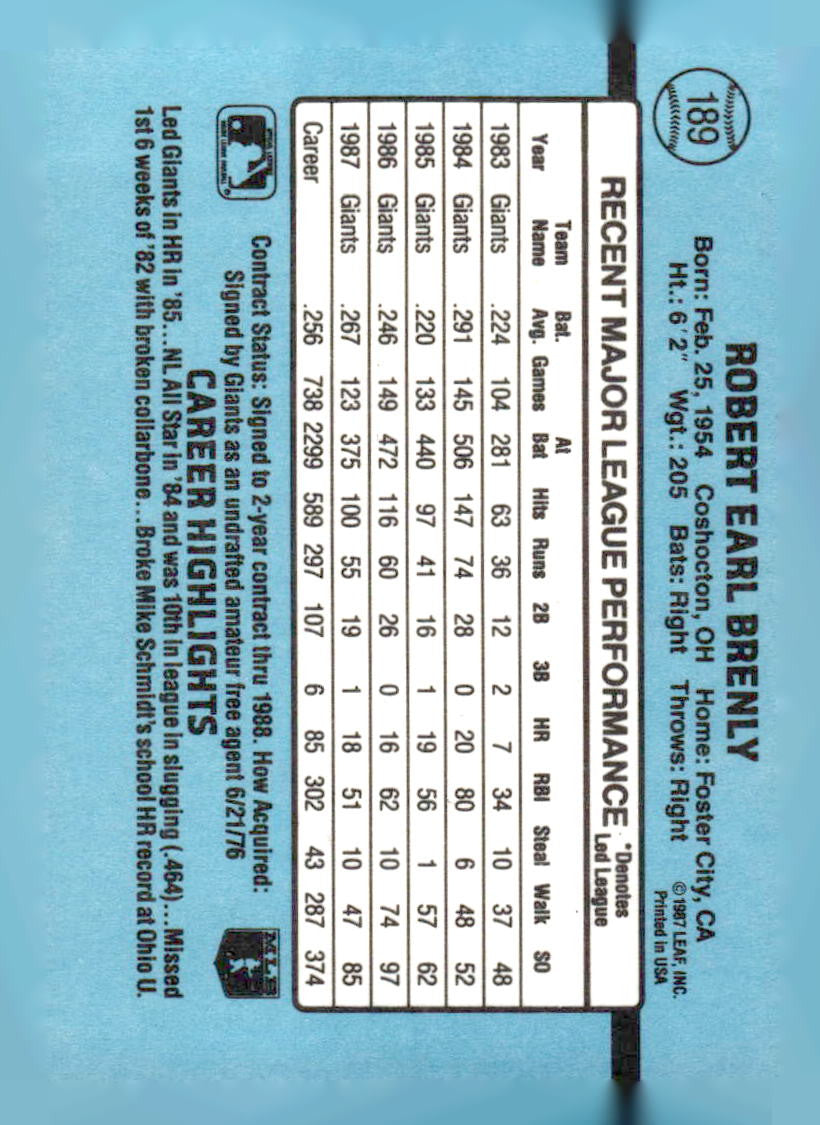 In 1988 Bob Brenly played for the San Francisco Giants.