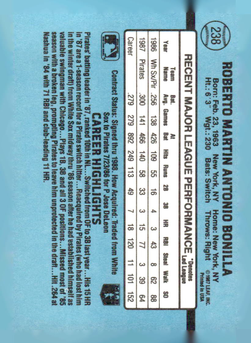 In 1988 Bobby Bonilla played for the Pittsburgh Pirates.