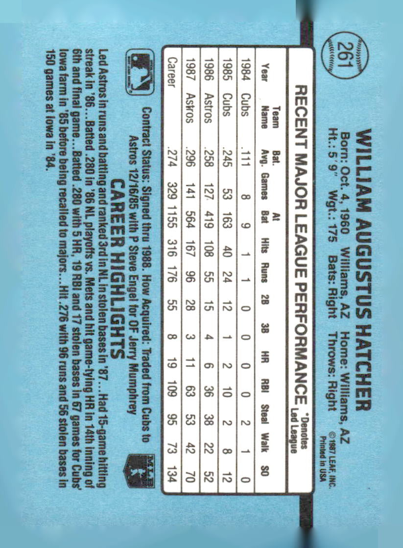 This is a nice example of a 1988 Donruss #261c Billy Hatcher