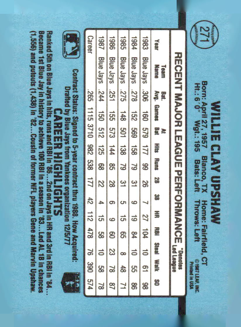 In 1988 Willie Upshaw played for the Toronto Blue Jays.