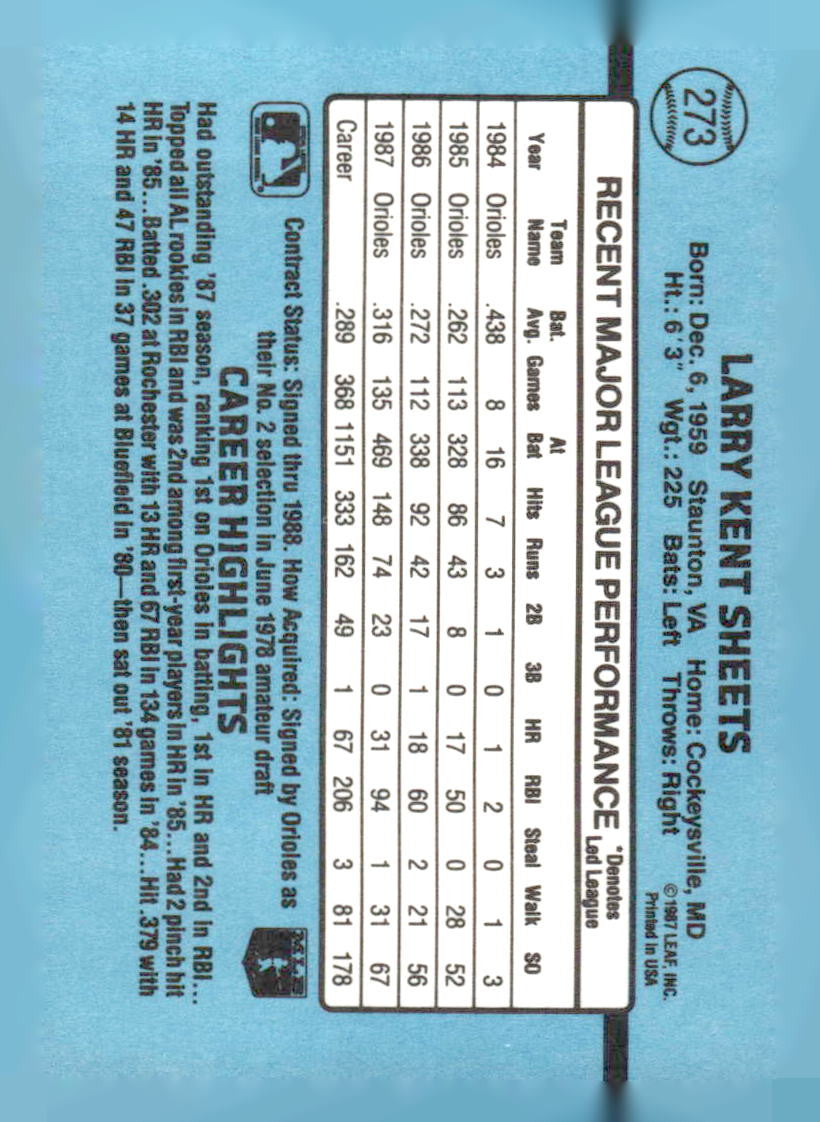 1988 Donruss #273c Larry Sheets