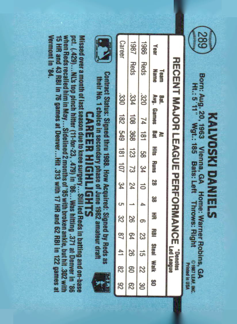 This is a nice example of a 1988 Donruss #289b Kal Daniels