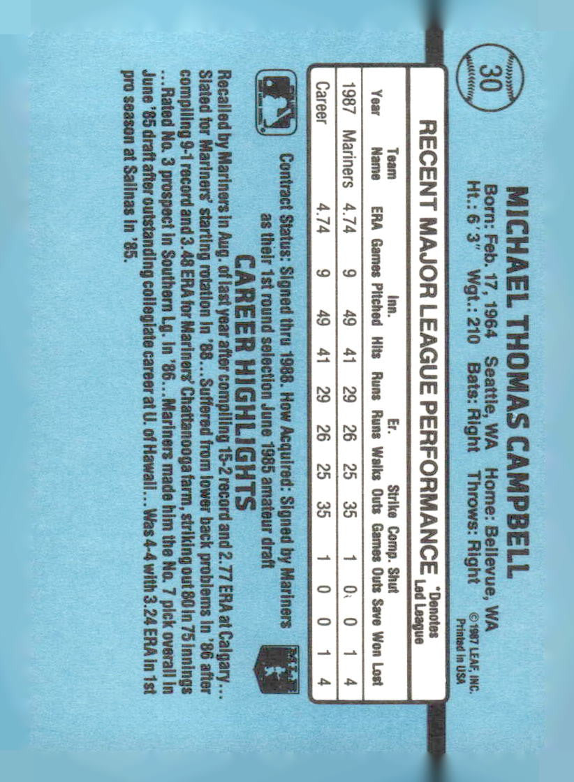 This is a nice example of a 1988 Donruss #30c Mike Campbell