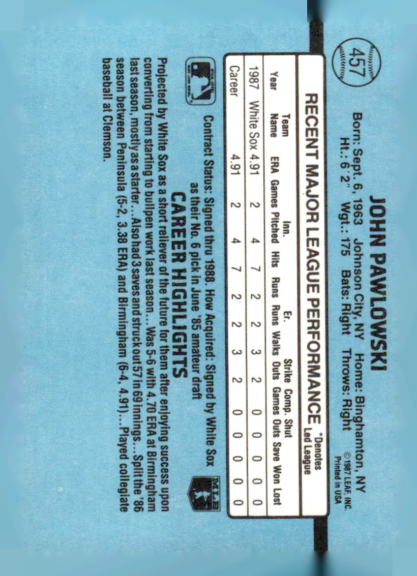 1988 Donruss #457b John Pawlowski