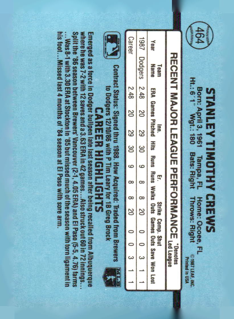 This is a nice example of a 1988 Donruss #464 Tim Crews
