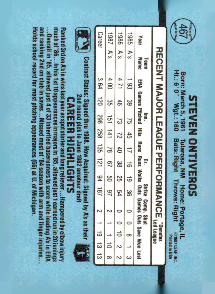 This is a nice example of a 1988 Donruss #467 Steve Ontiveros