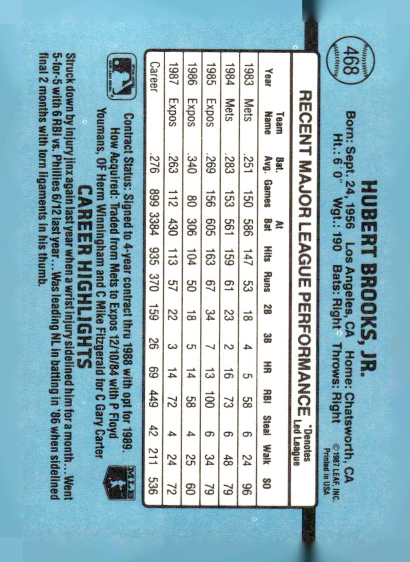 This is a nice example of a 1988 Donruss #468 Hubie Brooks