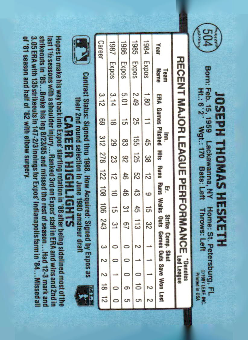 In 1988 Joe Hesketh played for the Montreal Expos.