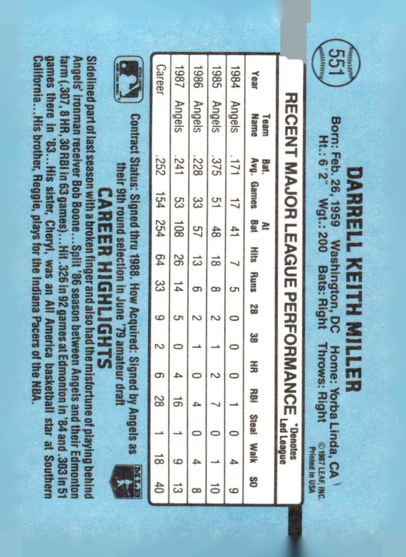This is a nice example of a 1988 Donruss #551b Darrell Miller