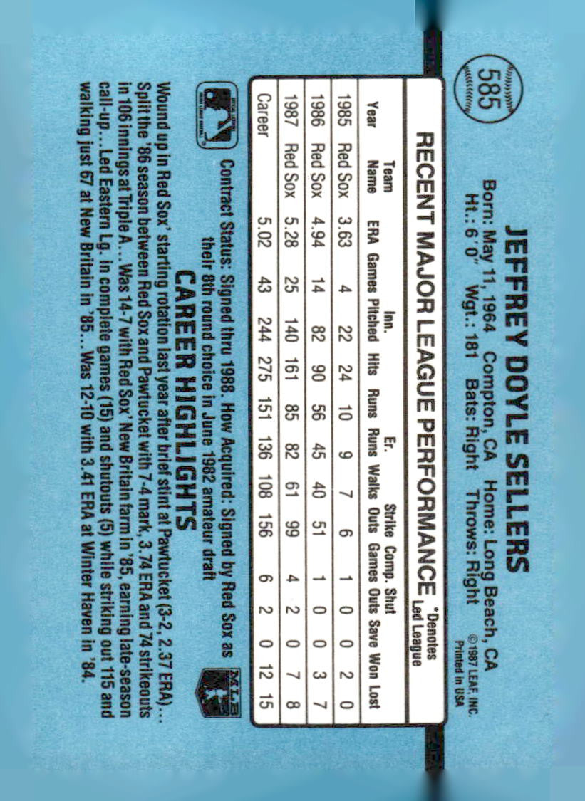 This is a nice example of a 1988 Donruss #585c Jeff Sellers