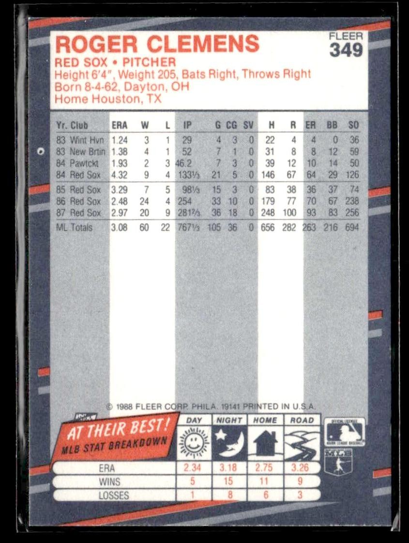 This is a nice example of a 1988 Fleer #349 Roger Clemens