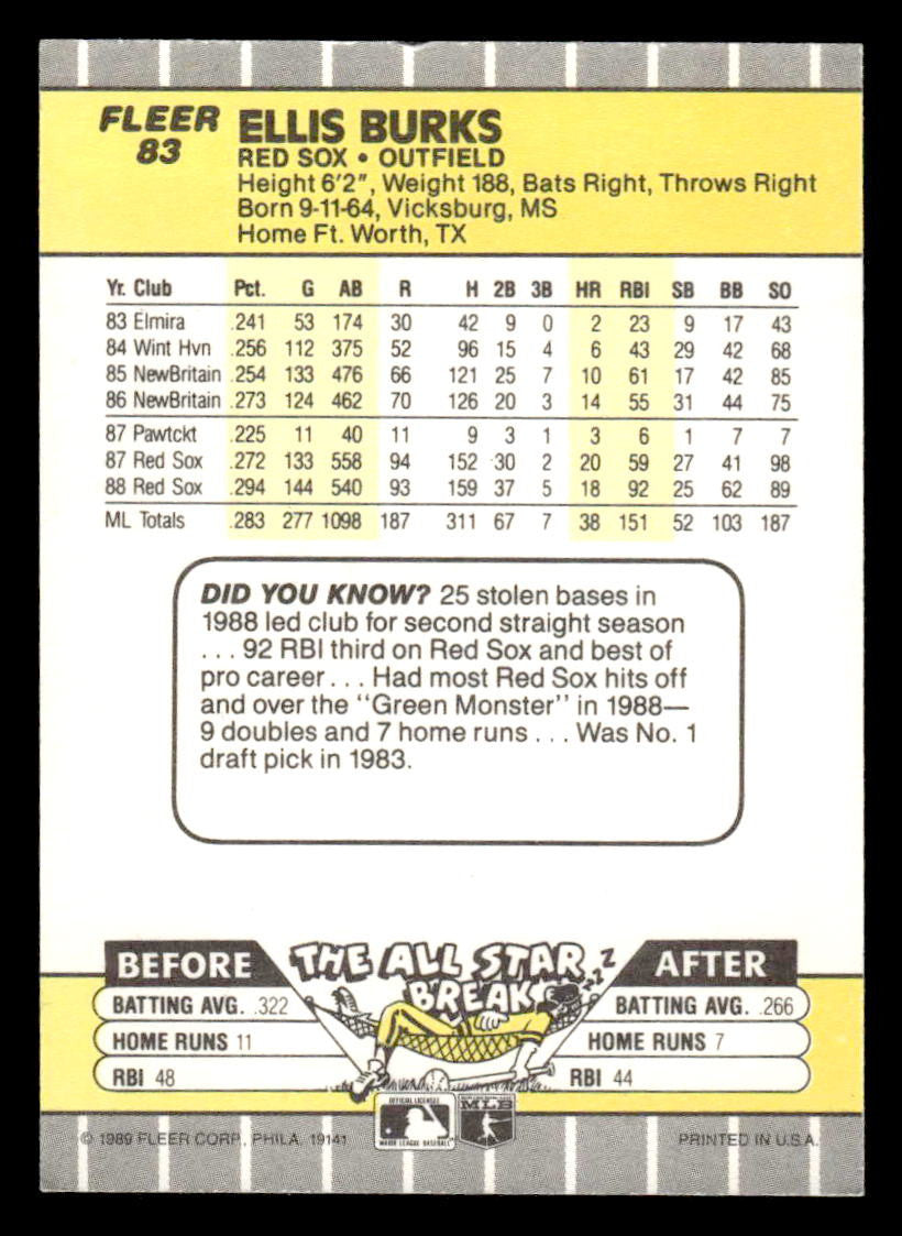 This is a nice example of a 1989 Fleer #83 Ellis Burks