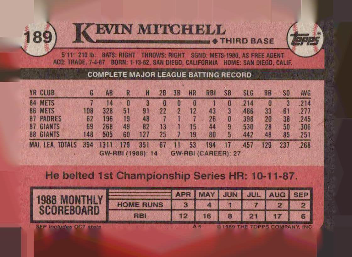 1989 Topps #189 Kevin Mitchell
