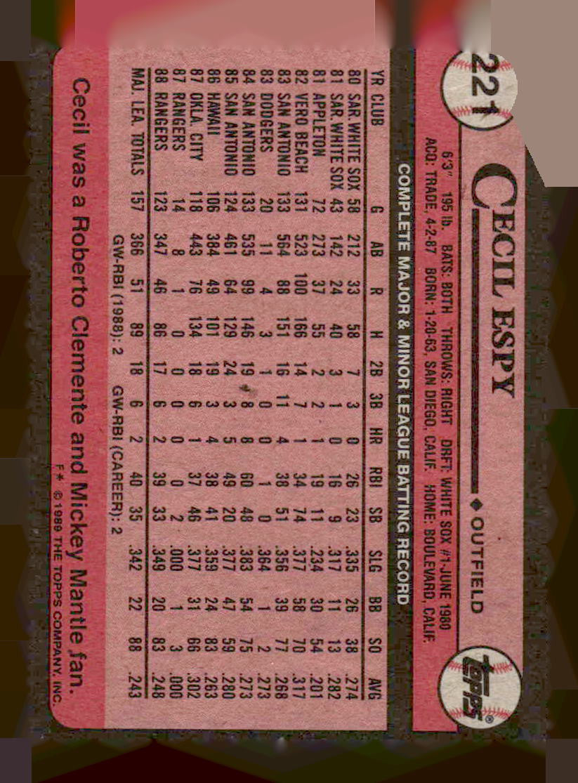 In 1989 Cecil Espy played for the Texas Rangers.