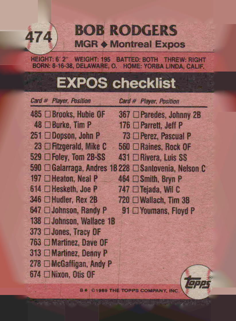 In 1989 Bob Rodgers played for the Montreal Expos.
