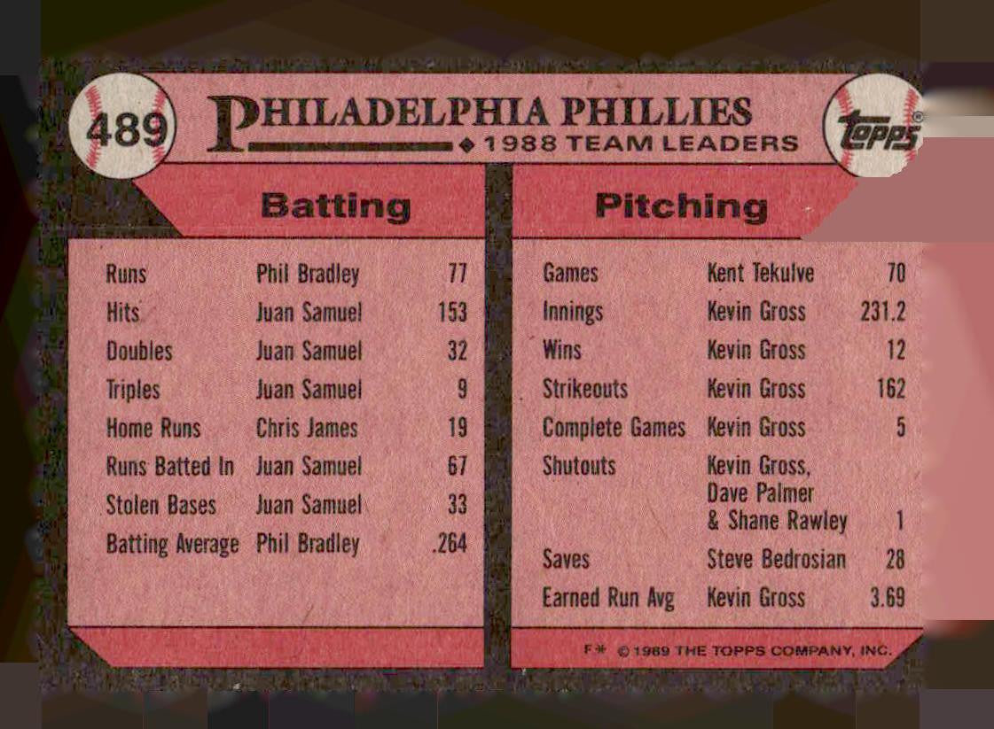 1989 Topps #489 Phillies Leaders