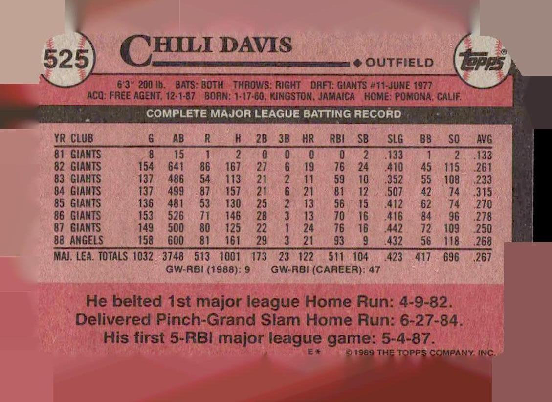 This is a nice example of a 1989 Topps #525 Chili Davis
