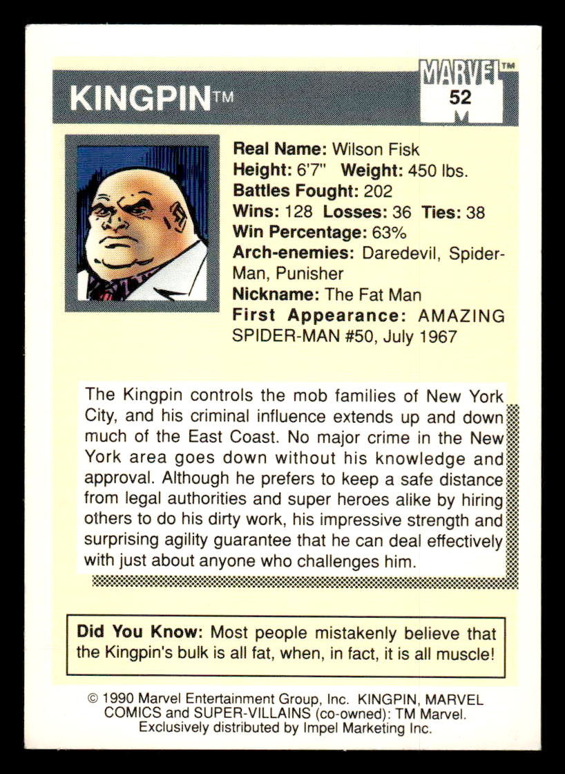 This is a nice example of a 1990 Impel Marvel Universe #52 Kingpin