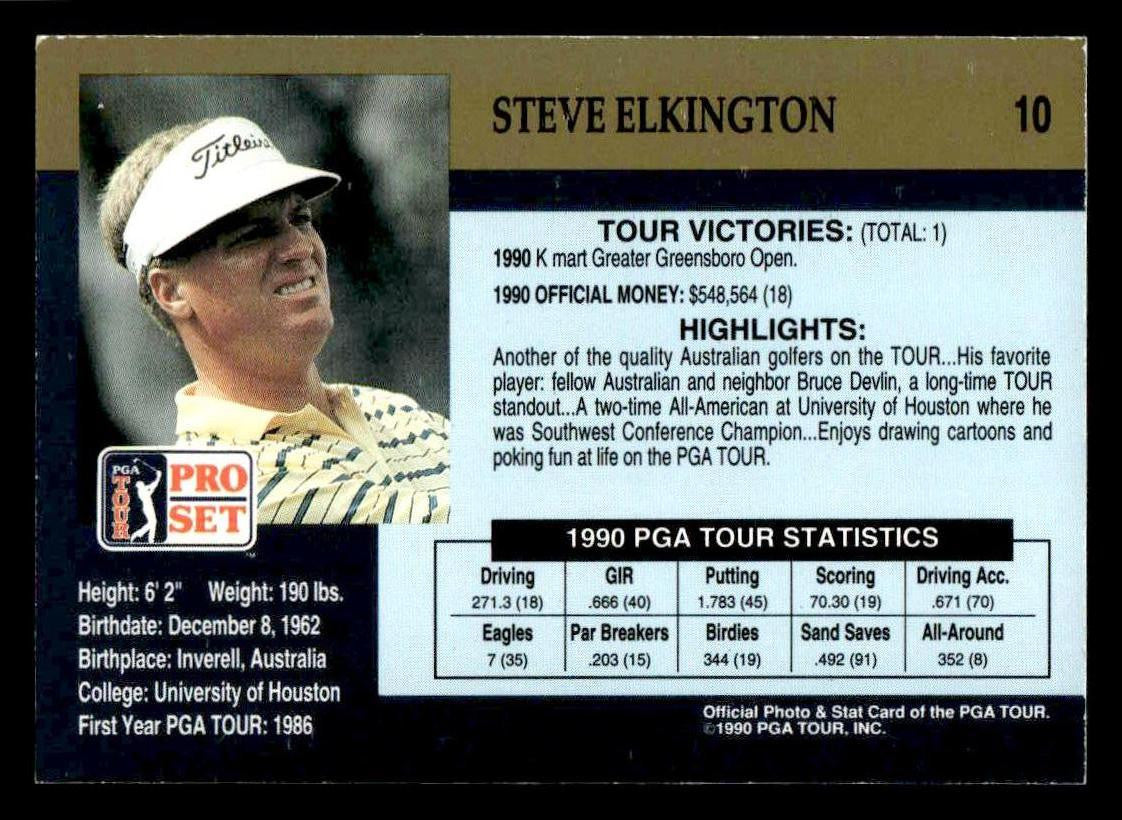 This is a nice example of a 1990 Pro Set PGA Tour #10 Steve Elkington