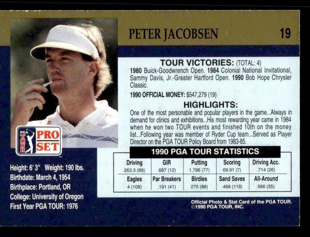 This is a nice example of a 1990 Pro Set PGA Tour #19 Peter Jacobsen