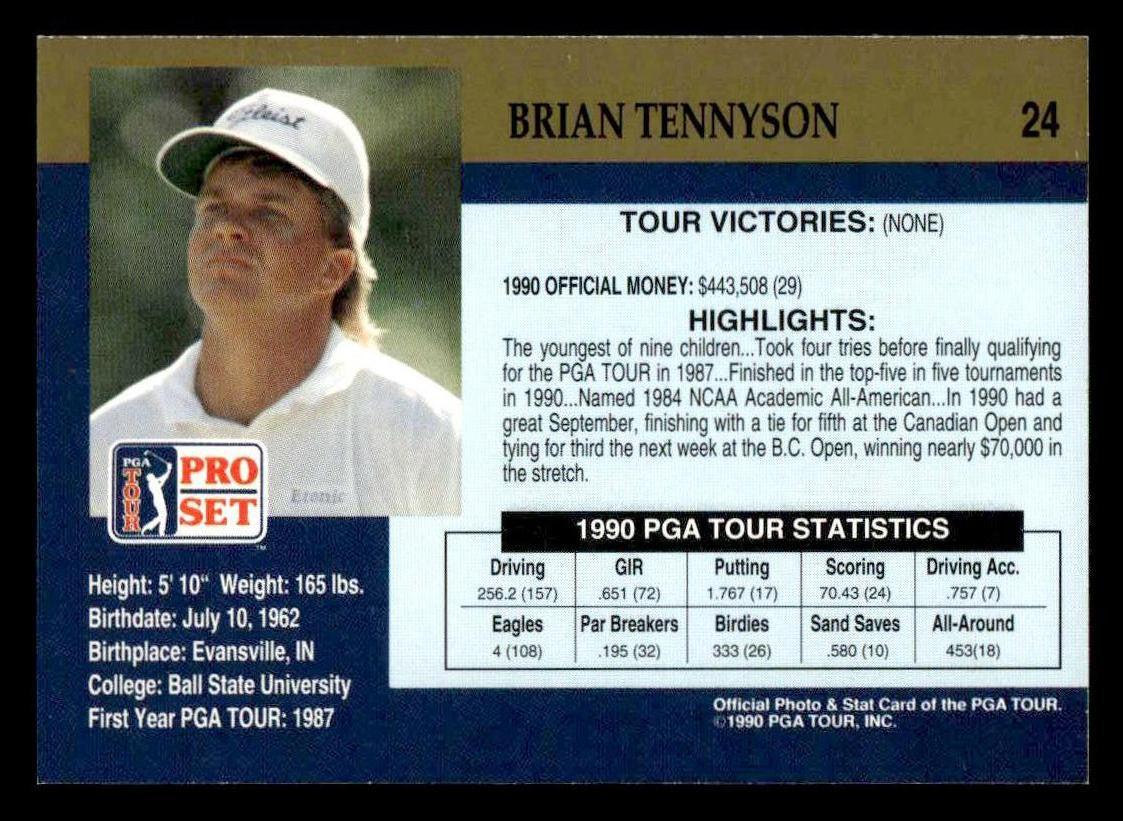 1990 Pro Set PGA Tour #24 Brian Tennyson