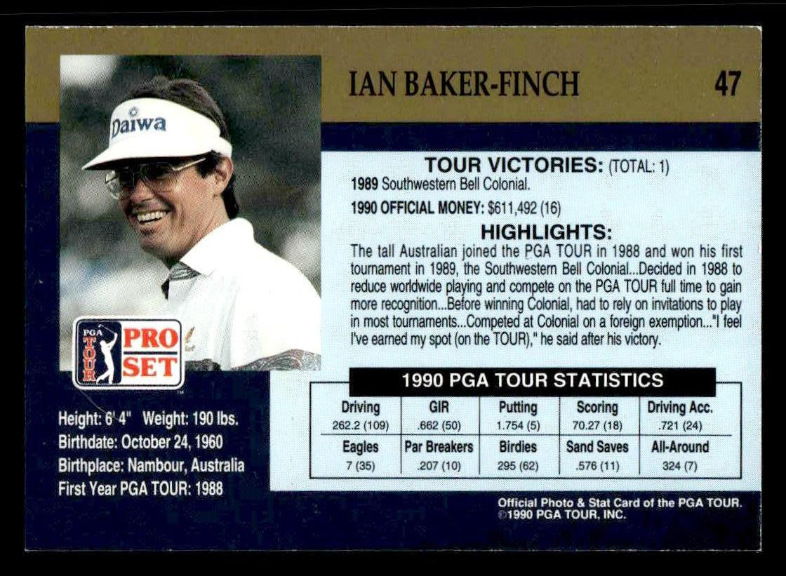 This is a nice example of a 1990 Pro Set PGA Tour #47 Ian Baker-Finch