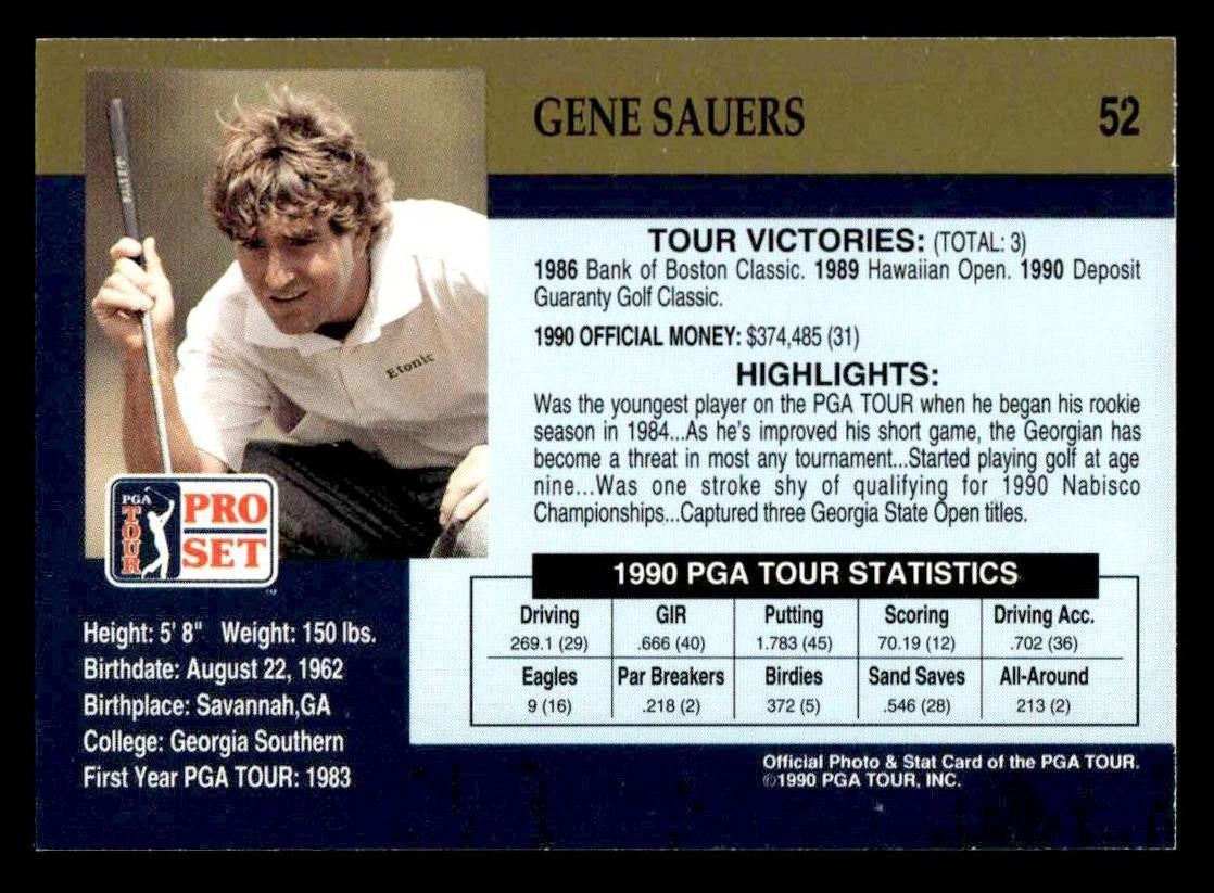This is a nice example of a 1990 Pro Set PGA Tour #52 Gene Sauers