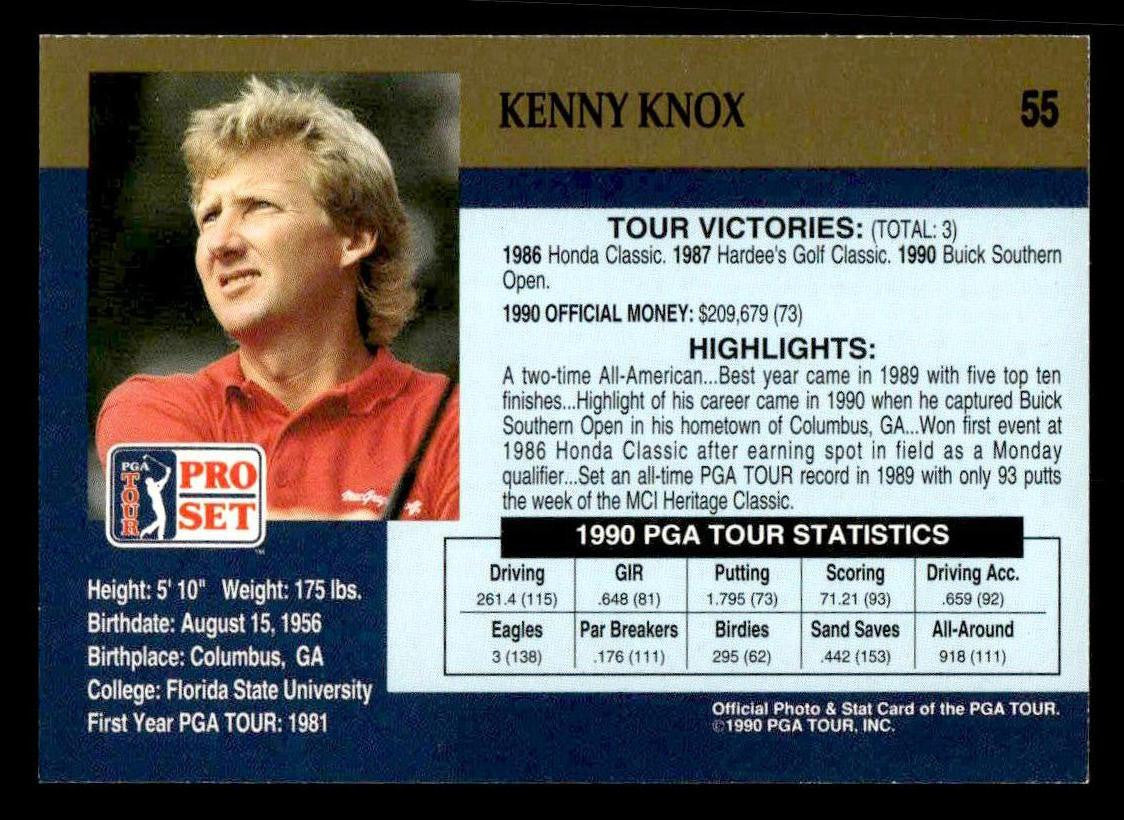 This is a nice example of a 1990 Pro Set PGA Tour #55 Kenny Knox