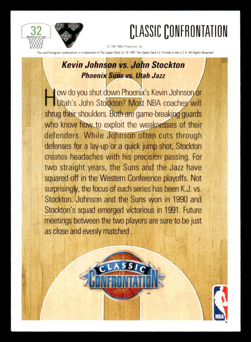 This is a nice example of a 1991-92 Upper Deck #32 K. Johnson vs. Stockton