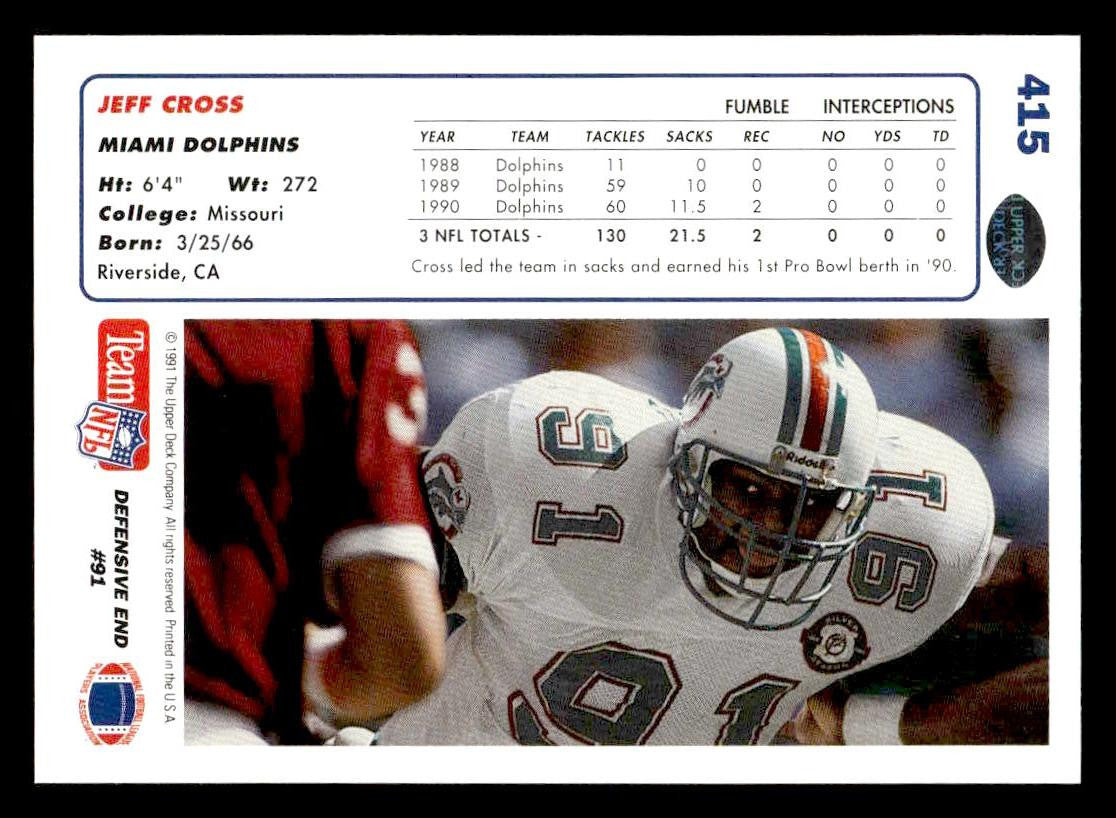 In 1991 Jeff Cross played for the Miami Dolphins.