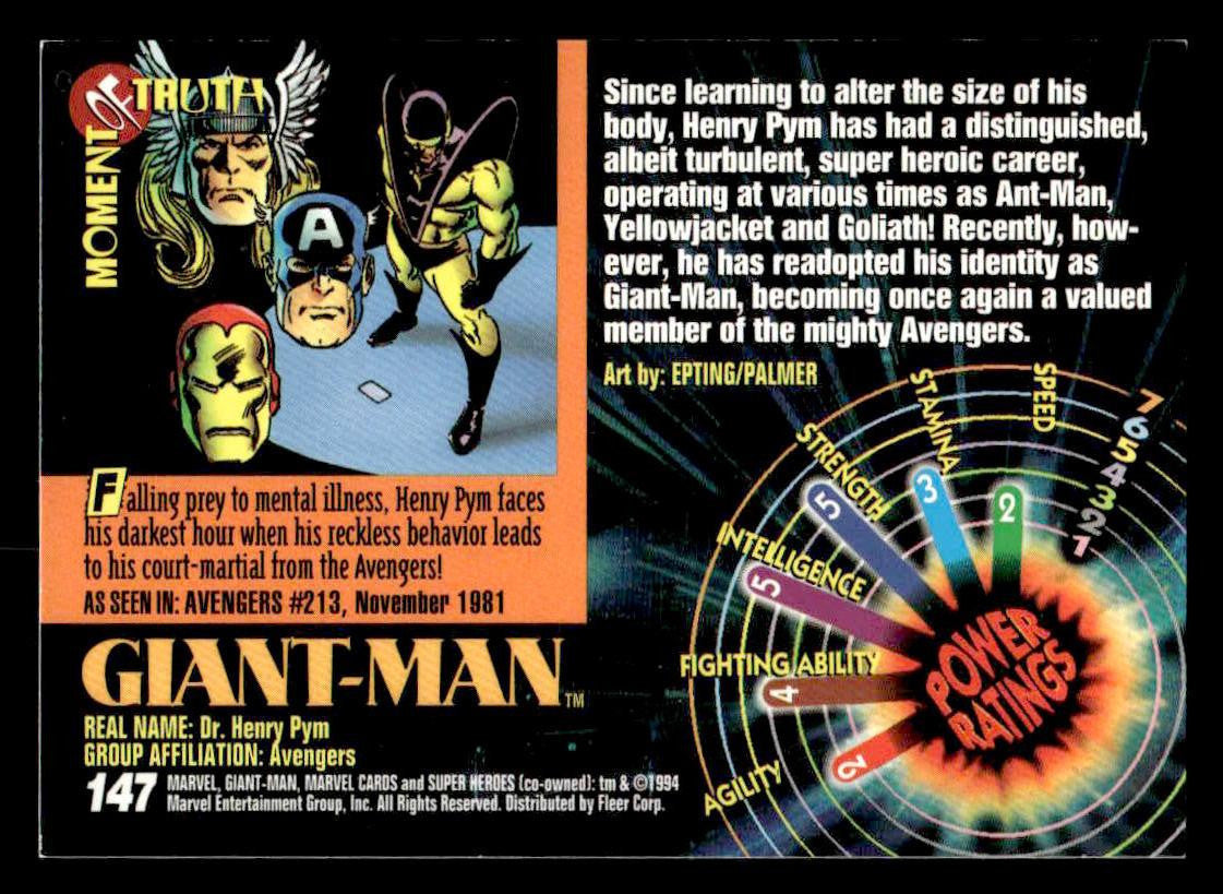 This is a nice example of a 1994 Fleer Marvel Universe #147 Giant-Man