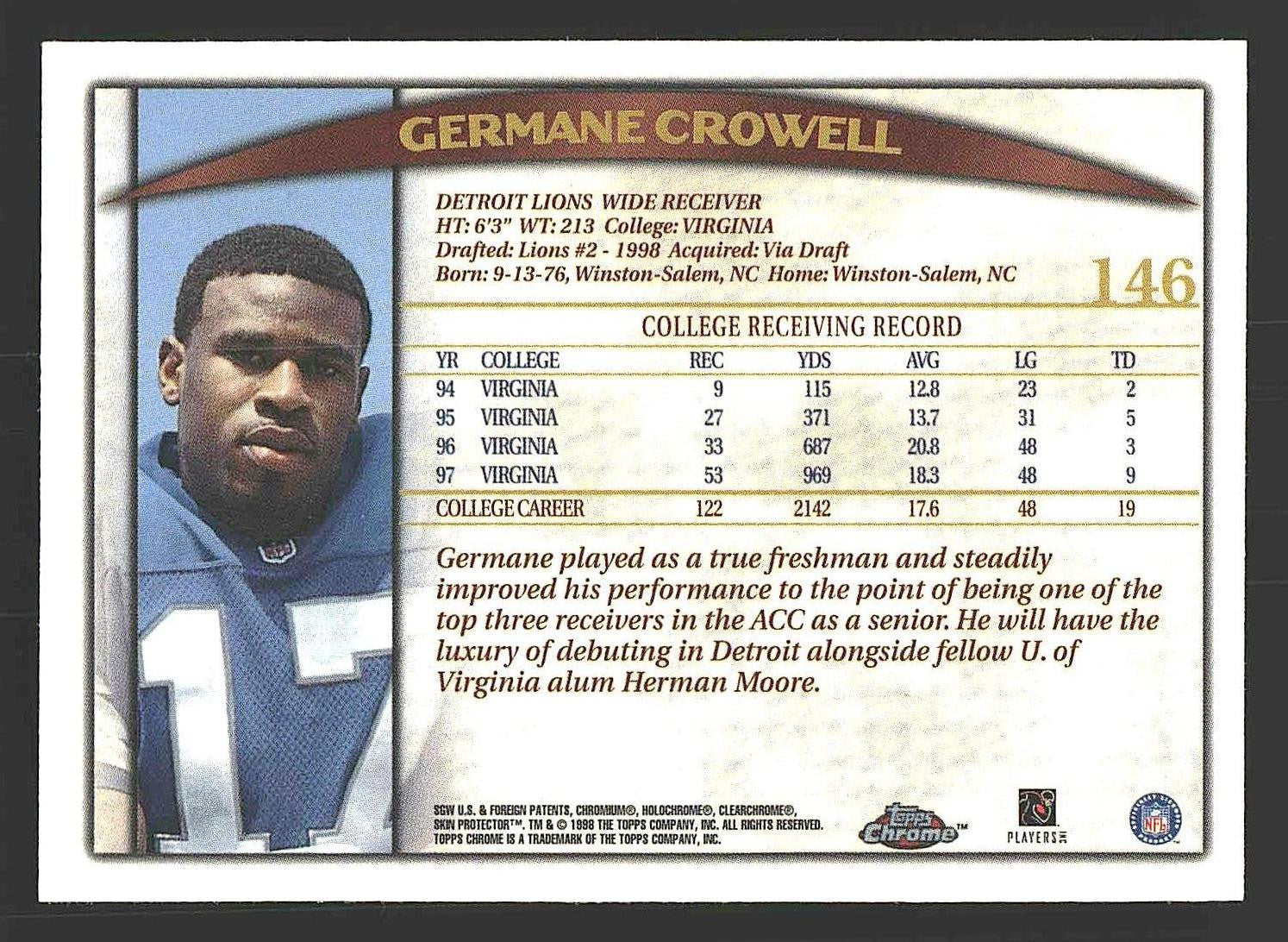 This is a nice example of a 1998 Topps Chrome #146 Germane Crowell