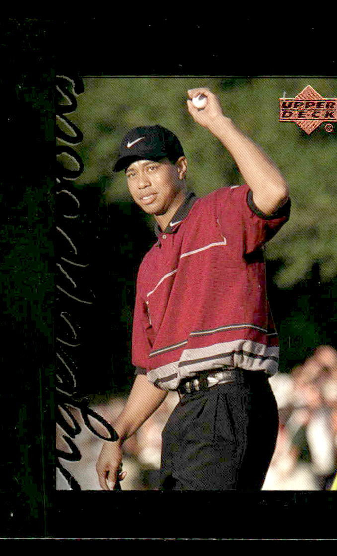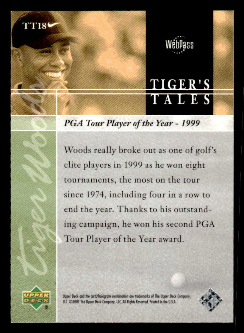 This is a nice example of a 2001 Upper Deck #TT18 Tiger Woods Tiger's Tales