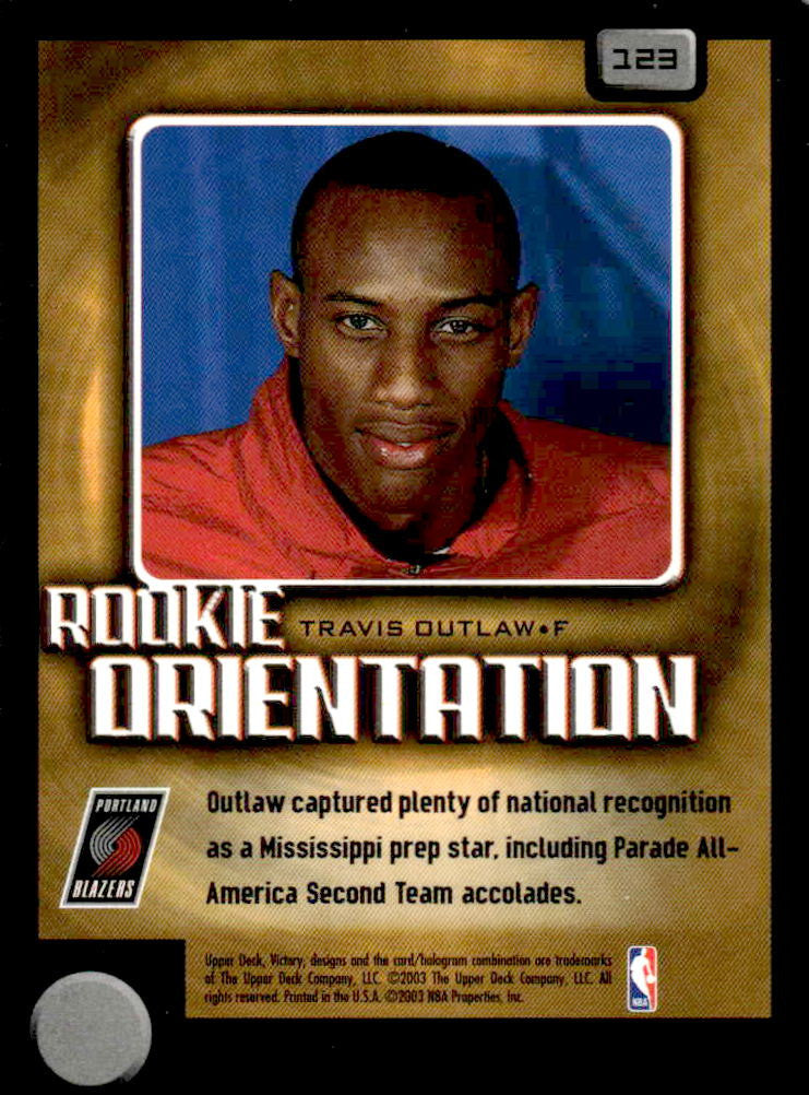 This is a nice example of a 2003-04 Upper Deck Victory #123 Travis Outlaw