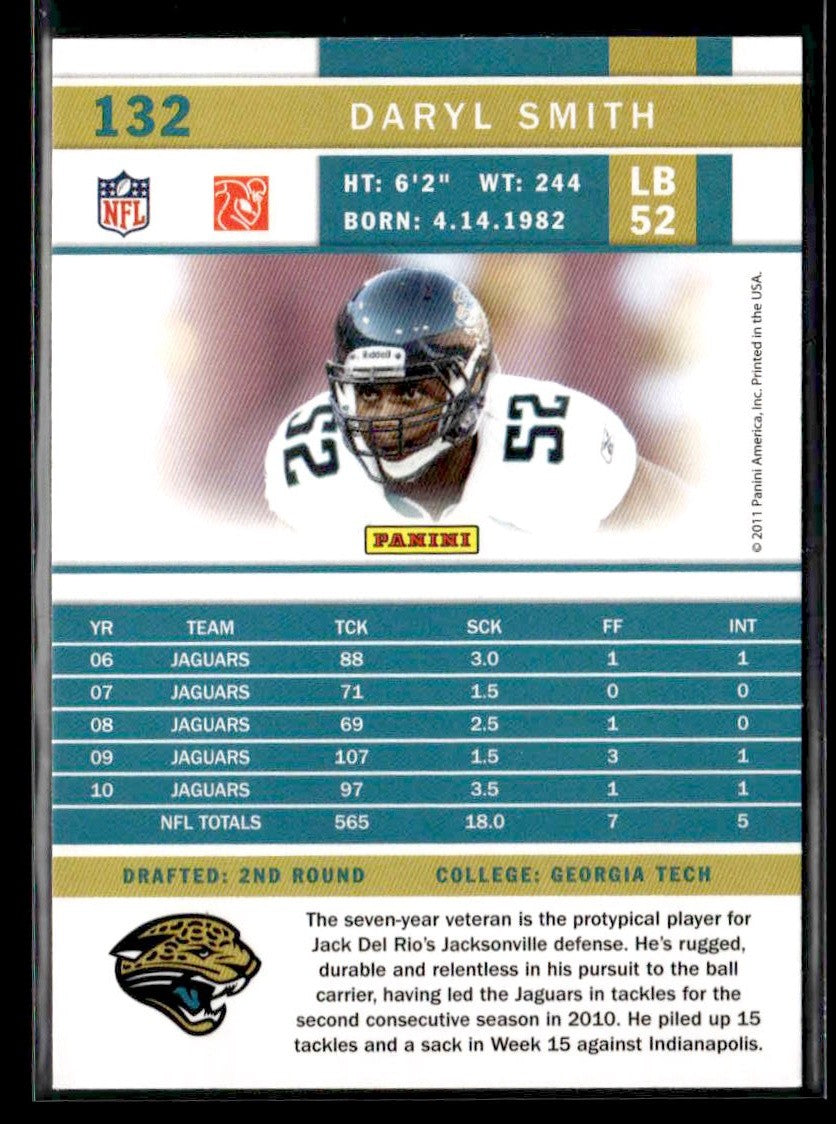 π₯ A premium trading card from the ο»Ώ 2011 Score release featuring Daryl Smith of the Jacksonville Jaguars.