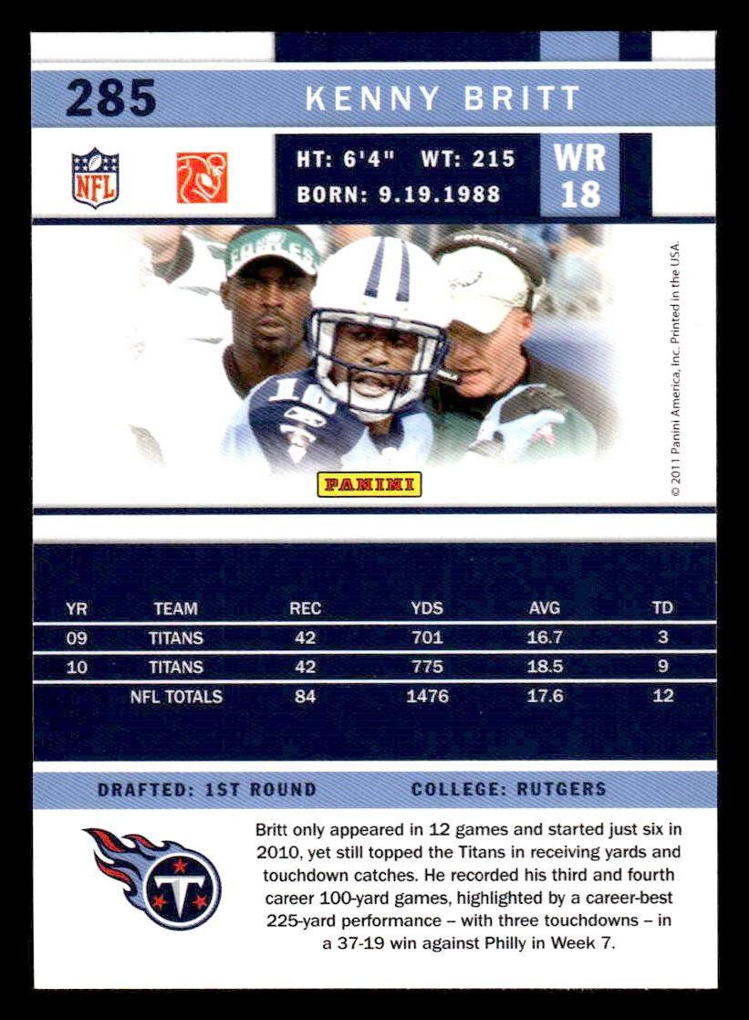 This is a sharp example of the 2011 Score #285 featuring Kenny Britt.