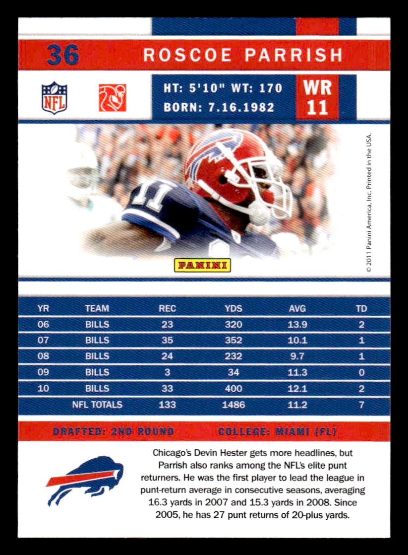 Roscoe Parrish played for the Buffalo Bills in 2011, and this card is a standout from the Score 2011 Score release. Whether you're chasing rookies, SSPs, or building a premium collection, this card delivers.